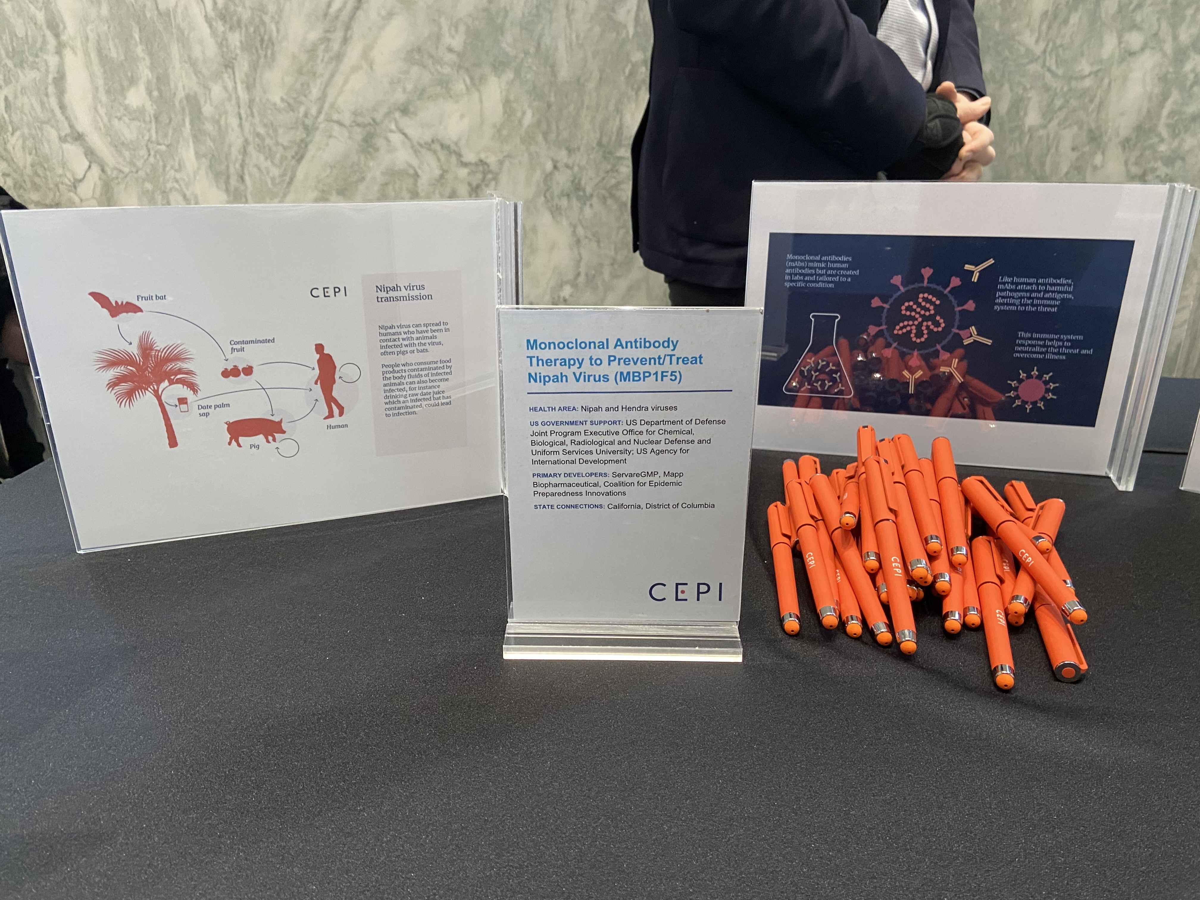| The Coalition for Epidemic Preparedness Innovations, whose US headquarters are in the District of Columbia, is supporting the development of a monoclonal antibody therapy being advanced by California-based Servare GMP and Mapp Biopharmaceutical to prevent and treat Nipah virus, a highly lethal zoonotic disease with no approved treatments or vaccines. This work received support from the DoD Joint Program Executive Office for Chemical, Biological, Radiological and Nuclear Defense and Uniformed Services University, as well as USAID.