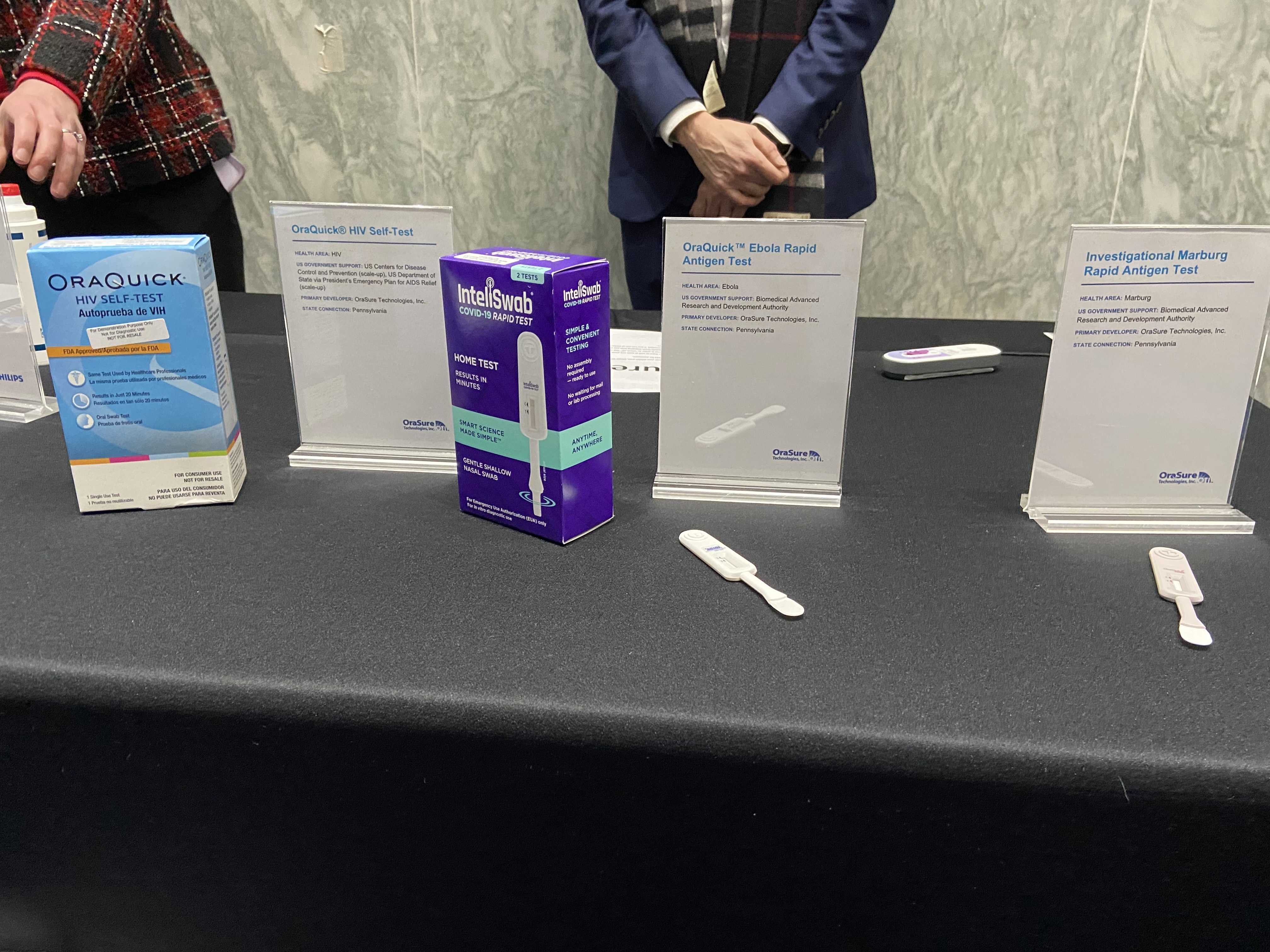 | OraSure Technologies, a Pennsylvania-based diagnostics company developed the OraQuick™ Ebola Rapid Antigen Test, a point-of-care tool that enables fast, presumptive diagnosis of Ebola virus disease. By providing results in minutes, the test supports health workers in rapidly isolating patients, initiating potentially lifesaving treatment, and ensuring safe and dignified burials that reduce transmission risk. The test was developed with support from BARDA.