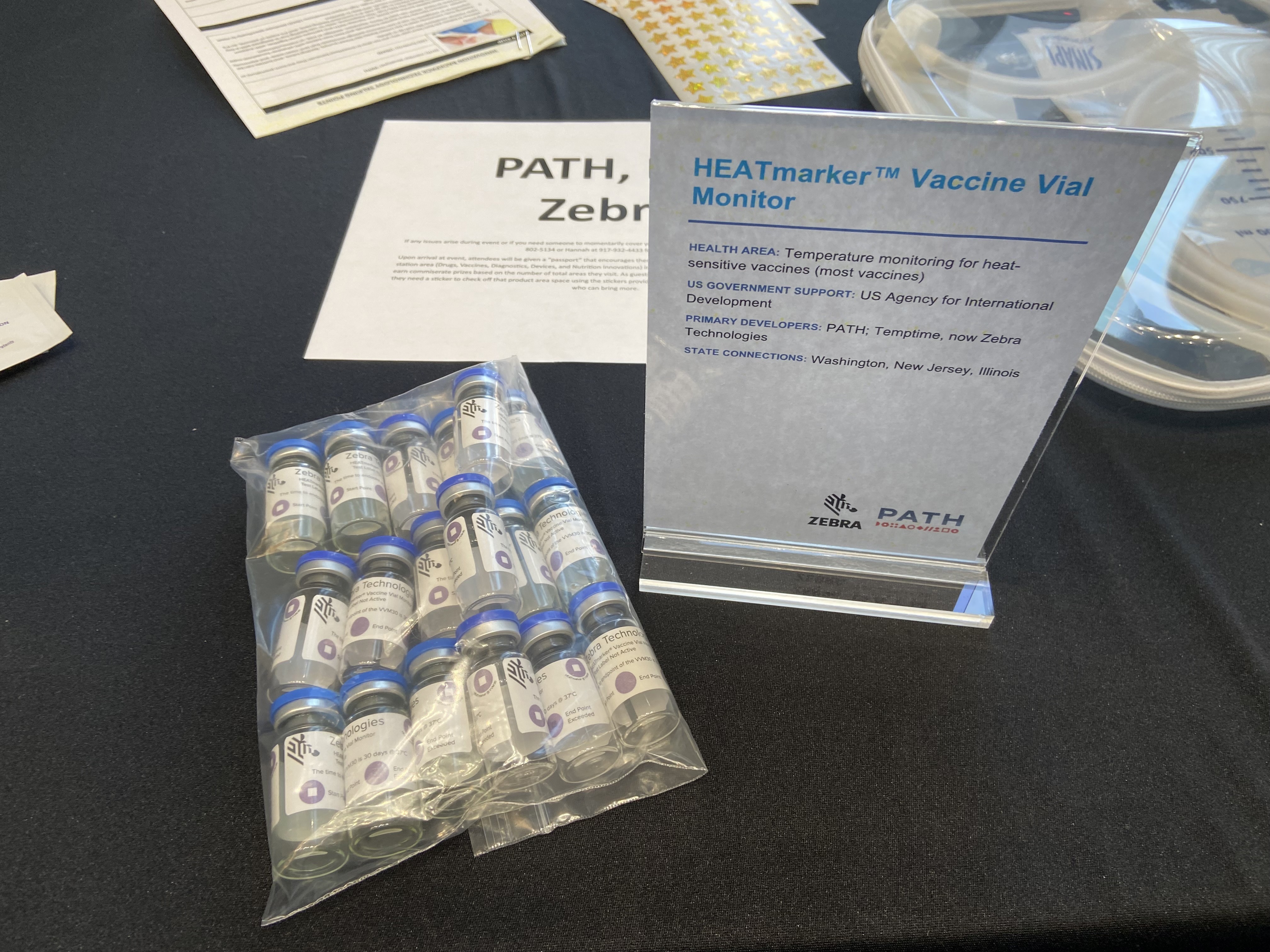 | Most vaccines require continuous refrigeration to remain effective, which can be a significant challenge in remote and low-resource settings worldwide. Breaks in the cold chain can lead health workers to discard perfectly good vaccines because they suspect heat damage or, worse, unknowingly administer doses that have lost potency. To solve this, PATH and New Jersey-based Temptime (later acquired by Illinois-based Zebra Technologies) developed the vaccine vial monitor, a small sticker placed on vaccine vials that changes color when exposed to too much heat, clearly indicating whether a vaccine is still safe to use, preventing waste and saving lives. This simple, low-cost innovation reduces waste, improves safety, and helps ensure lifesaving vaccines reach the people who need them. The work received crucial support from USAID.