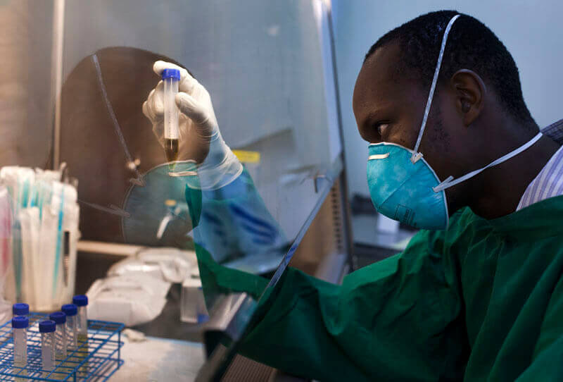 Kisian, Kenya - Wilfred Murithi, assistant research officer at KEMRI/CDC in Kisian, Kenya, prepares a sample to detect TB resistance to ritampicin, a TB drug.